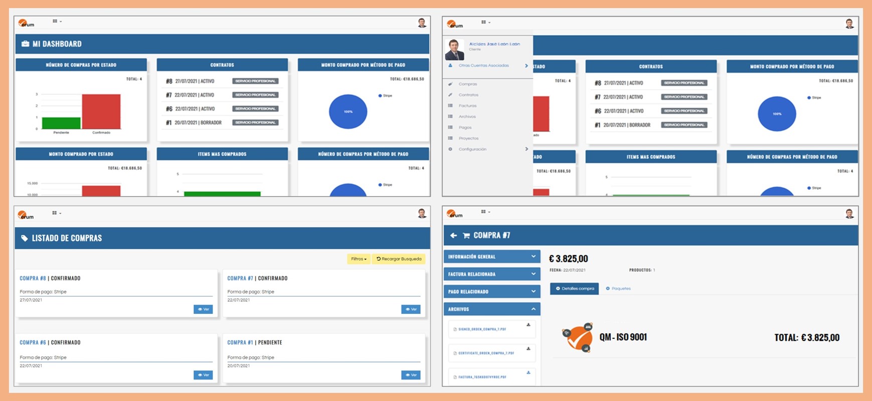 El usuario podrá definir su identidad corporativa, decidir cómo quiere mostrarse y ser percibido por el mercado. Podrá configurar su perfil de acuerdo a sus preferencias. Configurar sus productos, branding, descripciones, atributos... administrar existencias, almacenes, movimientos, listas de precios, definir métodos de envío... Tendrá a su disposición un Panel de Control con información actualizada sobre ventas, clasificación de productos más vendidos, pedidos de compra según su estado... en resumen, toda la información de contexto que necesita para optimizar su gestión